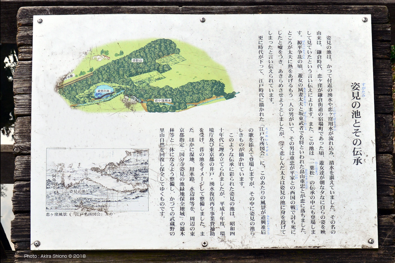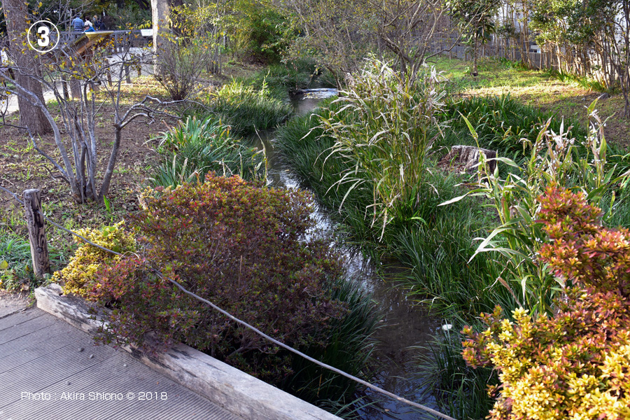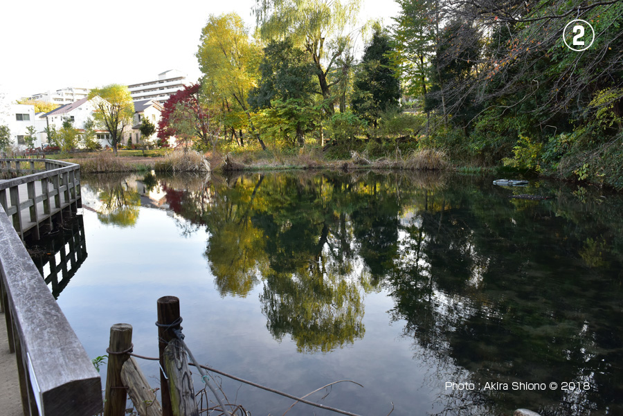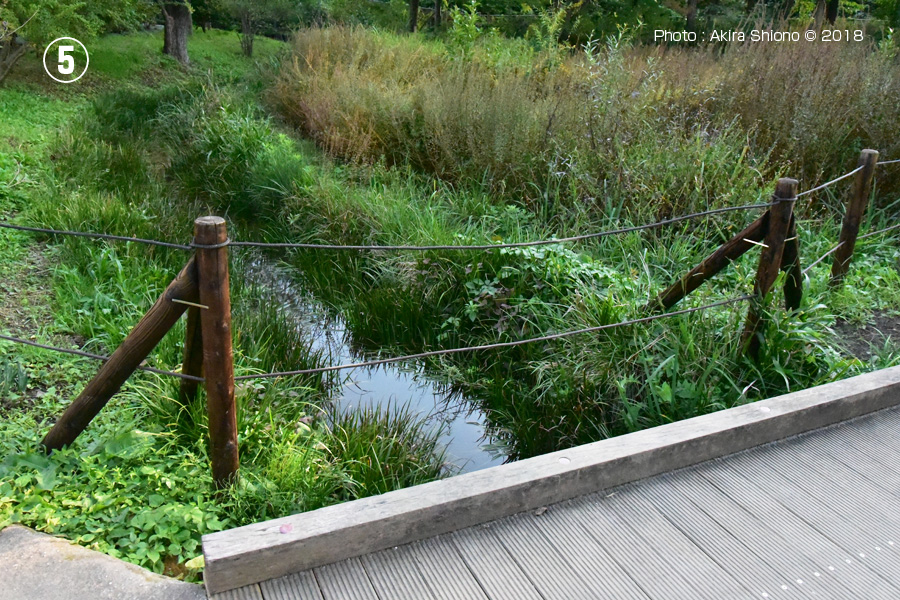 ![]() 排水口手前で分岐最多流れは橋を潜り、南の線路方向へ向かいます。 ![]() 姿見の池の湿地の南側にある水路で池の循環には大切なものです。 姿見の池設置の2つの説明板 トップへ 姿見の池緑地休憩所と国分寺姿見の池緑地保全地区 トップへ