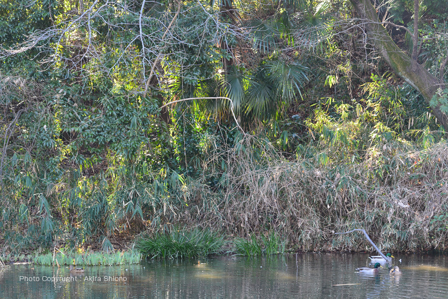 ここ西国分寺駅東側にある姿見の池には、1月になると花は殆ど姿を消して、葉を落とした木々と寒さに耐えて緑を残す草木がこの姿見の池の景色を作っています。この日は武蔵国分寺公園の武蔵の池から飛んできたと思われるカルガモの家族が見られました。冬は日が傾いているので、木々から漏れる陽射しがこの季節独特の景色を作っています。冬期は雨が比較的少ないので、池の水はかなり澄んでいます。小魚達は底に潜っているのか姿が見えません。東側に湿地には枯れた植物が刈り取られて空に向かって伸びるガマが日に照らされて奇麗でした。