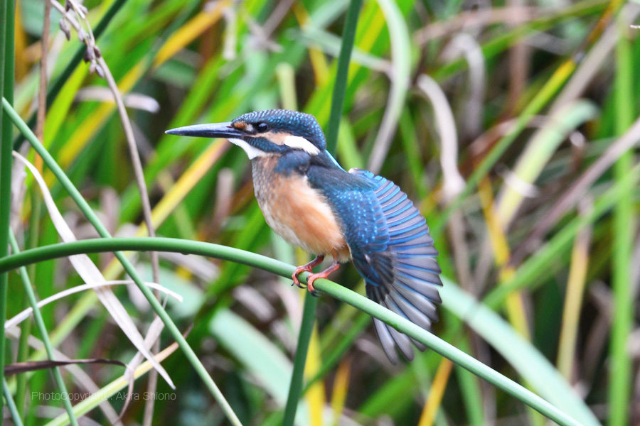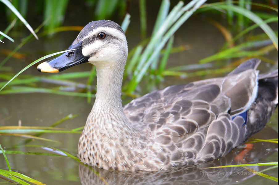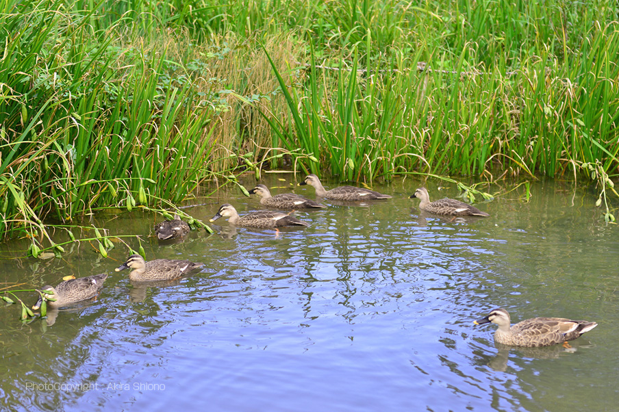 水中には黒い影、水上に出た部分は乾いているように見えます。 2014.8.18 無事に育っているカルガモ家族 トップへ 姿見の池のカルガモの家族は、葦や水路のわきに草が豊富など隠れ場所がたくさんあります。この様な環境で育ったヒナは、1羽の欠けもなくそのまま大きくなっています。また訪れるたくさんの人たちが、餌を上げるので通常よりも発育が早いようです。 2014.8.28カワセミ観察 トップへ 姿見の池のカルガモの家族は、猛暑が終わり小雨模様の天候が続きましたが、思い切って姿見の池に行ってみました。木道には常連さんが写真を撮っていました。挨拶をして近づくと運良くカワセミが草の茎に留っていました。今回は長いレンズで撮ってみました。池にはこのところの雨で、湧水が沢山流れ込み池は濁っていました。そのせいか、飛び込んだのを見たのは2回でしたが、魚をうまく捕らえることが出来ませんでした。カワセミは私がここに来てから場所を3回ほど変えた後、中央線の線路を越えて武蔵の池方向に飛び去ってしまいました。 撮影したカメラを見る |