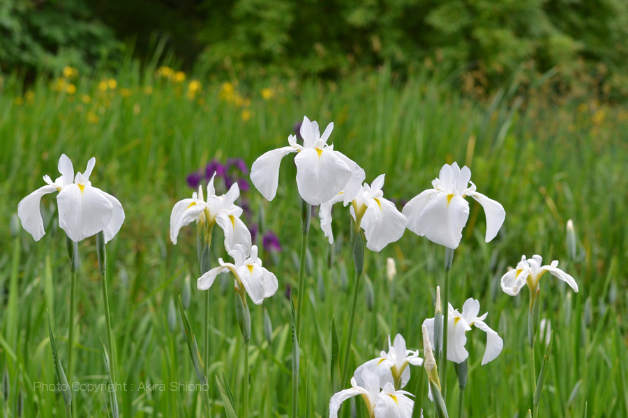 ![]() 好奇心があり、冒険好きのヒナは、水路、草むら、池の東の薮などに集団で動き回っていました。 ![]() 動き回っていたヒナは疲れたのか、池の浮き板の上で休み始めました。 彩りを増す姿見の池の湿地 2013.6.1 しばらく姿見の池にいっていなかったので、カメラを担いで出掛けることにしました。時間は午後1時を回っていましたが、現地についてみると沢山の低学年の子供達と保護者(先生?)らしき人が大勢いました。子供達を避けながら撮影箇所まで移動してみると、今までキショウブがあった場所に写真の白い花のショウブが群生していました。池側に回ってみると南側の一部にキショウブはかたまって咲いていました。その他薄いピンクのショウブもぽつぽつと咲いていました。 ![]() 今までキショウブが咲いていた場所に白ショウブが咲いています。