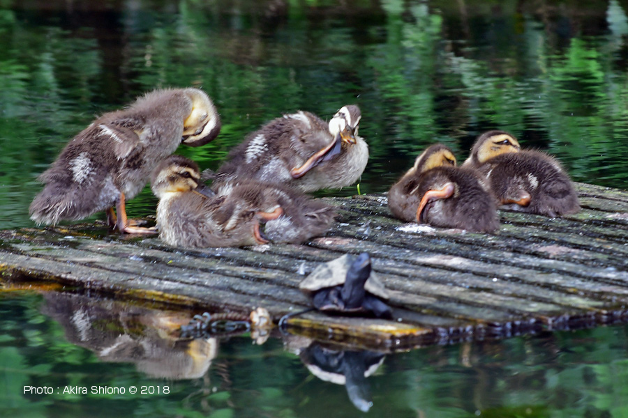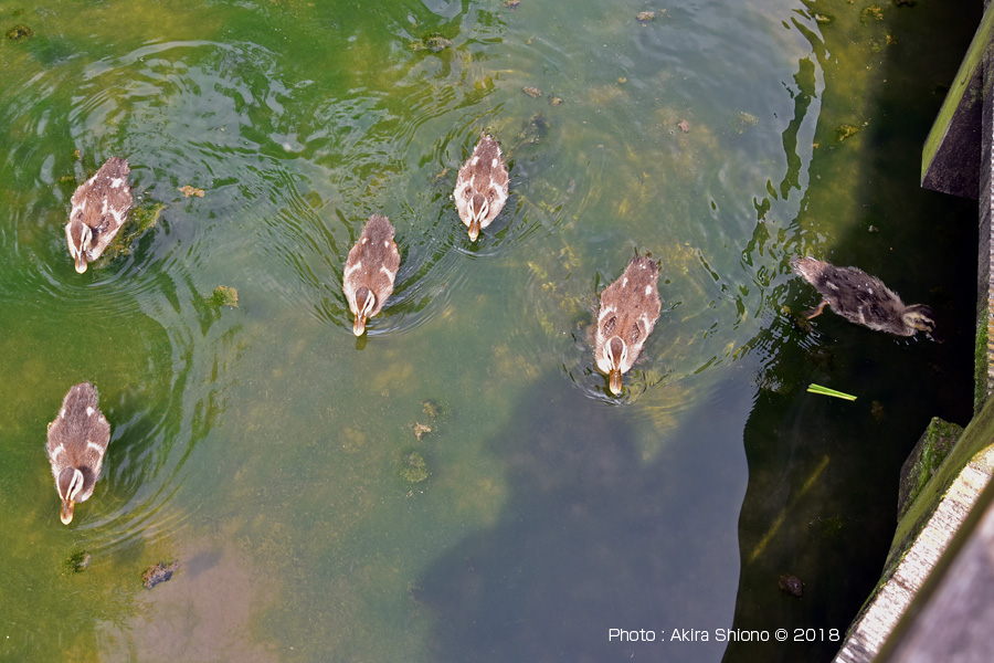 カルガモのヒナがいる姿見の池の光景 2018.6.22 ![]() この時、カルガモのヒナは6羽でしたが、以前は10羽以上居たそうです。