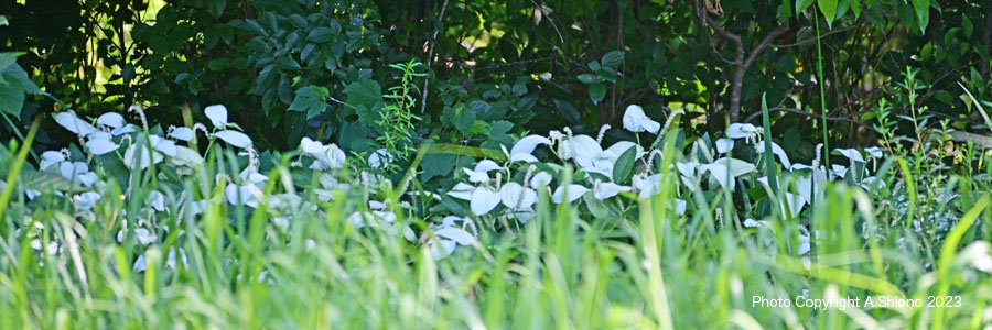 ![]() 池の東側の湿地で育つガマの穂とミソハギ 撮影:NIKON Z7+70-300mm f/4.5-6.3 VR FX132/217mm ISO 250-450 1/2000-1/250 f/5-6 -0.3-0段 ![]() 湿地の南側に繁茂するハンゲショウ 撮影:NIKON Z7+70-300mm f/4.5-6.3 VR FX300mm ISO 320 1/320 f/6.3 -0.3-0段 ミソバギ咲く姿見の池の湿地 (2018.7.8) トップへ