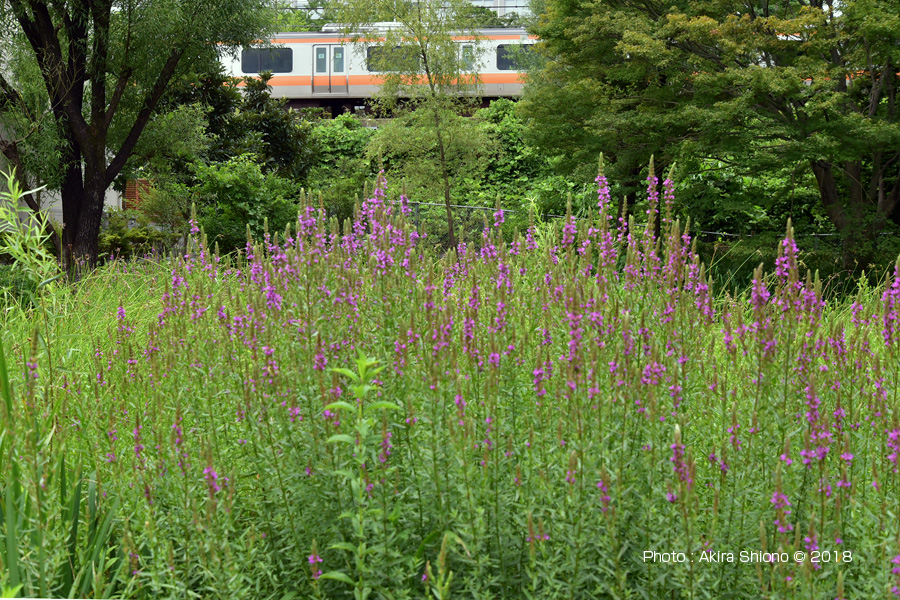 今年は、早々と梅雨があけ記録を更新しましたが、九州〜岐阜あたりまで豪雨が襲い、各地で大きな爪痕を残しました。一旦戻り梅雨のように雨の日がありましたが、ここ東京では32℃前後夏日が続いています。やはり時期になると菖蒲が終わった湿地にはミソハギの鮮やかな花が咲き出しました。こちらも雨が降ったせいか、姿見の池の水位は高くなって、水は濁っています。池底の藻がところどころ浮いています。