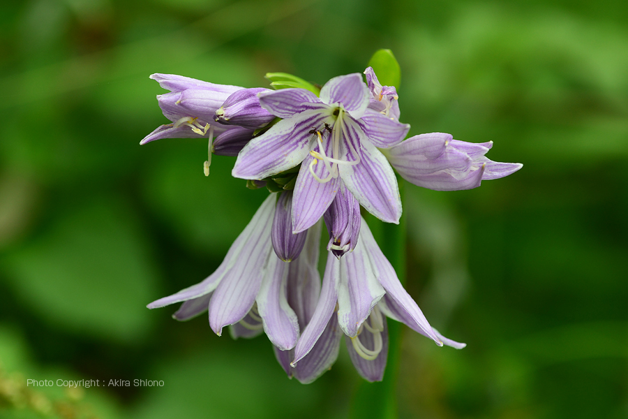 湧き水の流れる遊歩道の入口にはノカンゾウが咲きます。ギボウシは所々で花を開いていました。