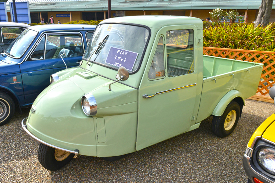 ダイハツミゼットは三輪車で流線型のボディーが可愛らしい マツダR360クーペも流線型の曲面のデザイン