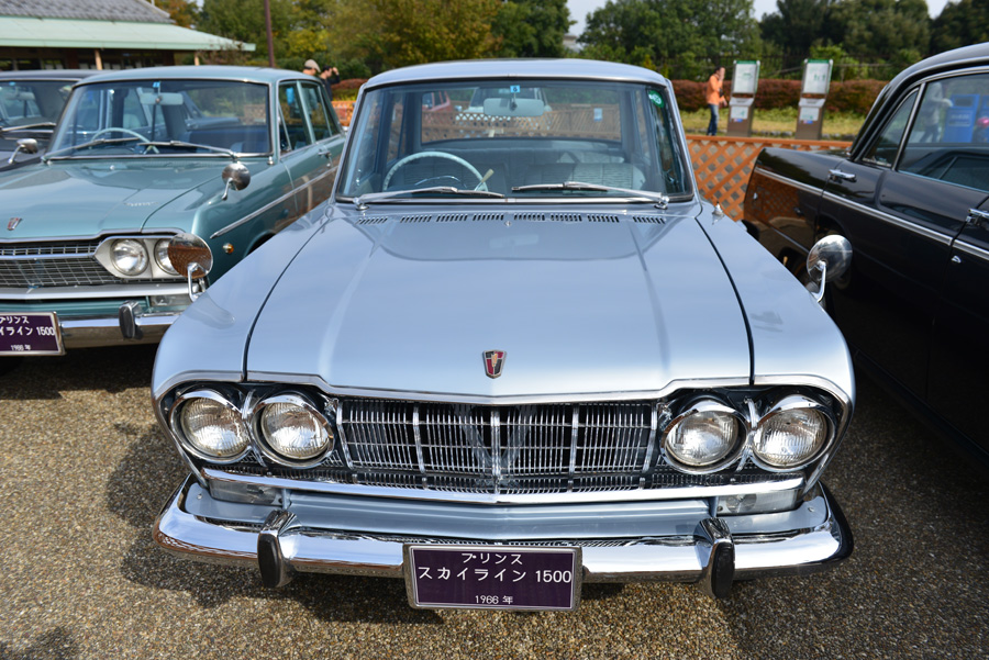 合併前のプリンス自動車のスカイライン1500DXと合併後の日産プリンス自動車のスカイライン1500DX