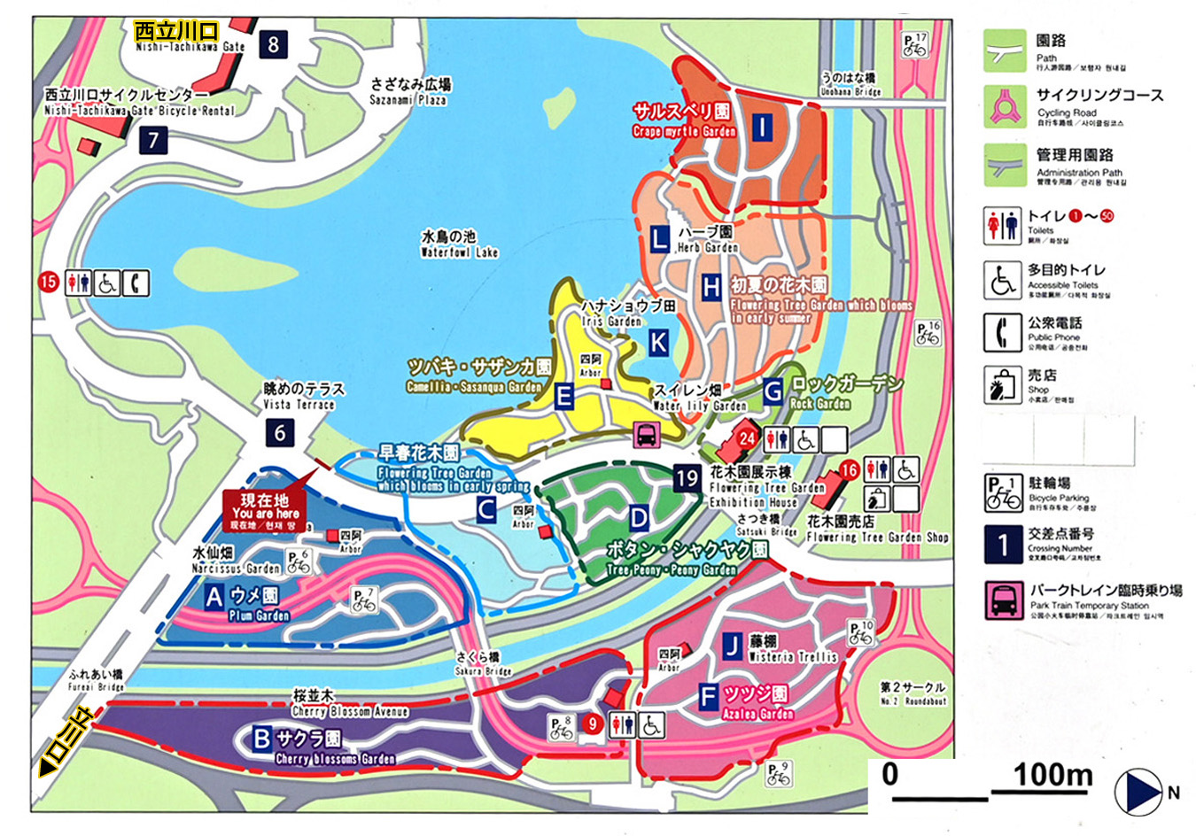 水鳥の池はL字型になっている昭和記念公園の左下に当たる底辺部分にあります。昭和記念公園は出入り口が5つありますが、青梅線の西立川駅近くの「西立川口」が一番近い入り口です。青梅線で来園する方にとっては、電車で来られる方にとっては一番近い入口です。 ![]() 池まわりの花木園マップ(北が右の地図)※クリックで、1350x1000pixに拡大します。 水鳥の池とカモ類 2014.11.24 トップへ