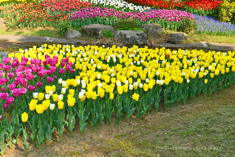 ![]() JR青梅線の西立川口から近い渓流広場の周りにはこの時期チューリプで埋め尽くされます。