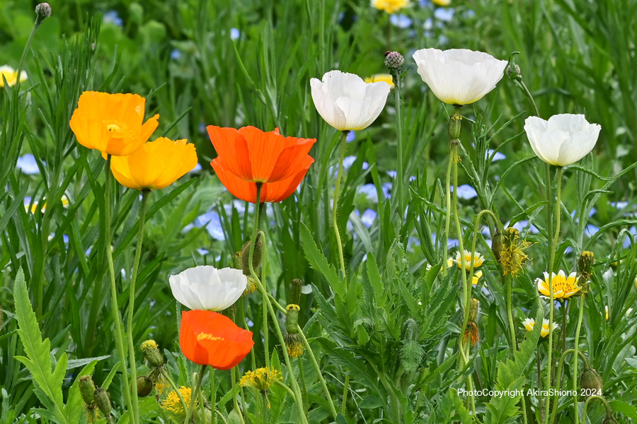 ![]() 東花畑では様々な色のポピーが咲く 撮影:NIKON Z7 Z24-120mm f/4 FX:120mm ISO 100 1/320 f/9 -0.3段 1.5倍トリミング