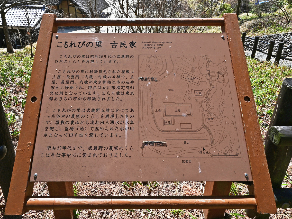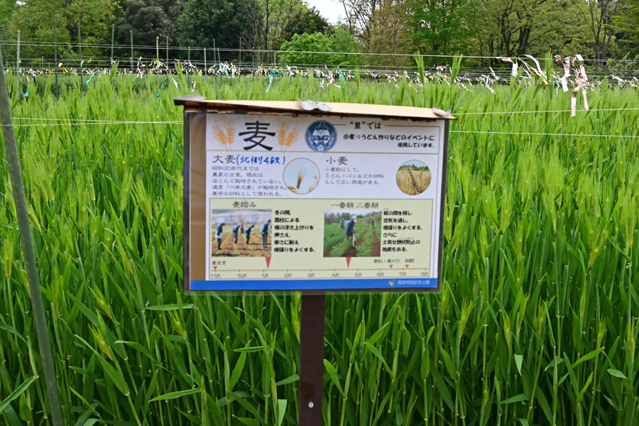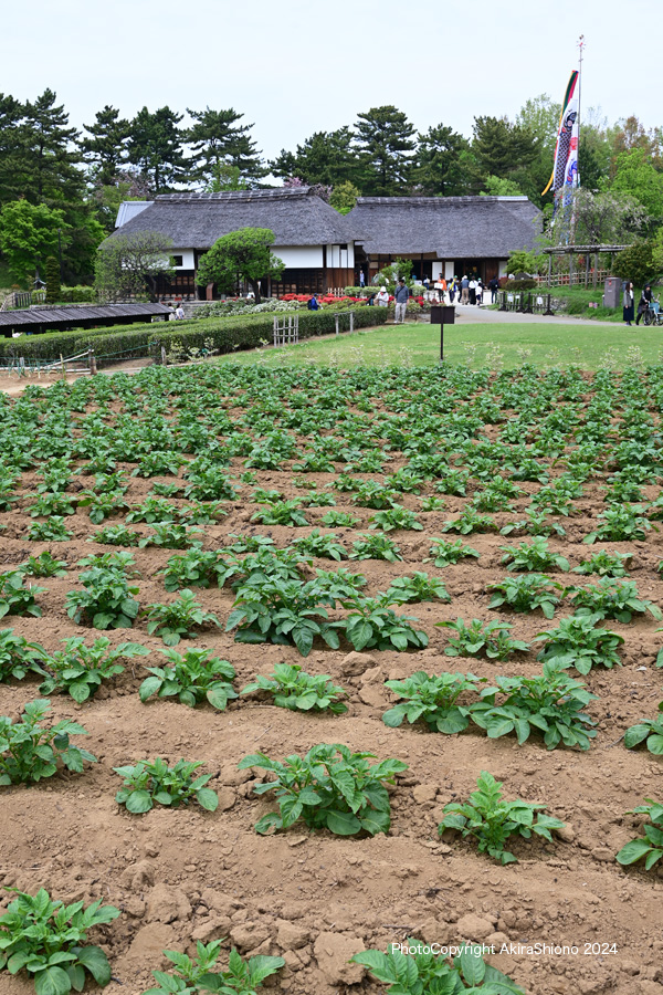 国営昭和記念公園の北側には、この「こもれびの里」がありますが5月間近になると掲揚ポールが設置され、風が吹くと鯉のぼりが空を泳ぎます。このこもれびの里は窪地にあり、このエリアのどこからでも鯉のぼりを眺めることができます。 こもれびの里に移築復元された屋敷は、主屋;長屋門、内蔵・外蔵の4棟で、主屋、長屋門、内蔵が東京都狛江市の石井家から移築され、現在は立川市指定有形文化財となっています。また外蔵は東京都あきる野市から移築されました。 こもれびの里は武蔵野丘陵にかつてあった谷戸の農家の暮らしを再現したもので、屋敷の裏山から流れる湧き水が水車を廻し、釜場(池)で温められた水が用水となって田や畑を潤しています。 昭和30年代まで、武蔵野の農家の暮らしは手仕事中心に営まれておりました。 文:国営昭和記念公園 こもれびの里 設置看板より引用 4月下旬の農園の風景 トップへ