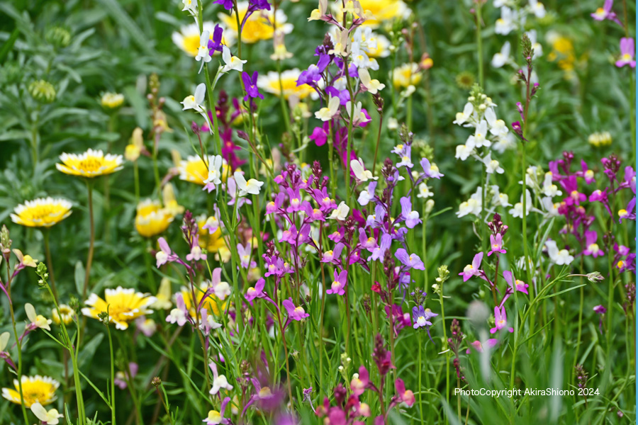 みんなの広場東のお花畑 トップへ 立川市・昭島市にある昭和記念公園のほぼ中央にある「みんなの広場」の近くでは花畑が3箇所あり、花々が咲き乱れています。2024年は3月16日(土)~5月26日(日)までの間フラワーフェスティバルが行われています。広大な園内のほぼ中央にある、会場は『みんなの原っぱ』の外周にあります。このお花畑は、みんなの原っぱの北東にある「東花畑」西南にある「西花畑」と南東にある「南花畑」が配置されています。ちなみに前回ご紹介しましたチューリップガーデンは西花畑の西南隣にあります。 昭和記念公園:施設紹介サイト ![]() みんなの原っぱの東花畑からの南の景色 撮影:NIKON Z7 14-30mm f/4 FX:14mm ISO 100 1/200 f/9 0段 トリミング ![]() 東花畑のカラフルな花々 撮影:NIKON Z7 14-30mm f/4 FX:96mm ISO 100 1/250 f/10 0段 トリミング