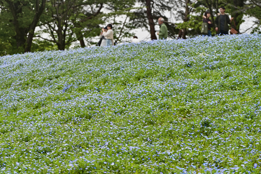 ネモフィラの丘と花畑 昭和記念公園 4月下旬 四季の変遷: 1月 2月 3月 4月 5月 6月 7月 8月 9月 10月 11月 12月 移 動: 一面にネモフィラが咲き始めた花の丘 鯉のぼりが掲揚されたこもれびの里 4月下旬の農園の風景 みんなの広場東のお花畑 リンク: 昭和記念公園の4月下旬 昭和記念公園の4月上旬 昭和記念公園の3月下旬 昭和記念公園の4月下旬 昭和記念公園の4月上旬 昭和記念公園の3月下旬 昭和記念公園の12月 2月の日本庭園 昭和記念公園/新緑の園内 昭和記念公園/フラワーフェスティバル 13.11 昭和の時代展/自動車展 昭和記念公園砂川口の紅葉 昭和記念公園トンボの湿地 昭和記念西立川口 一面にネモフィラが咲き始めた花の丘 トップへ 立川市・昭島市にある昭和記念公園の拝島口近くの花の丘では、「ネモフィラ」が丘一杯に咲き誇ります。この時期ニュースでは各地でネモフィラの開花が放映されています。この時は4月21日で丘に咲くネモフィラは花は咲いているもののこの時点では、まだ葉の方が目立っていました。この丘に咲くこの花を観に沢山の方々が訪れ、拝島口は駐車場待ちの車で長蛇の列ができていました。 ![]() 2024年4月下旬の花の丘は「ネモフィラ」で一面が覆われました 撮影:NIKON Z7 T70-300mm f/4.5-6.3 FX:175mm ISO 100 1/400 f/9 -0.3段 ![]() 奥一帯の水色がこもれびの里の石碑から見える「ネモフィラの花の丘」 撮影:NIKON Z7 Z14-30mm f/4 FX:14mm ISO 100 1/200 f/9 0段 鯉のぼりが掲揚されたこもれびの里 トップへ