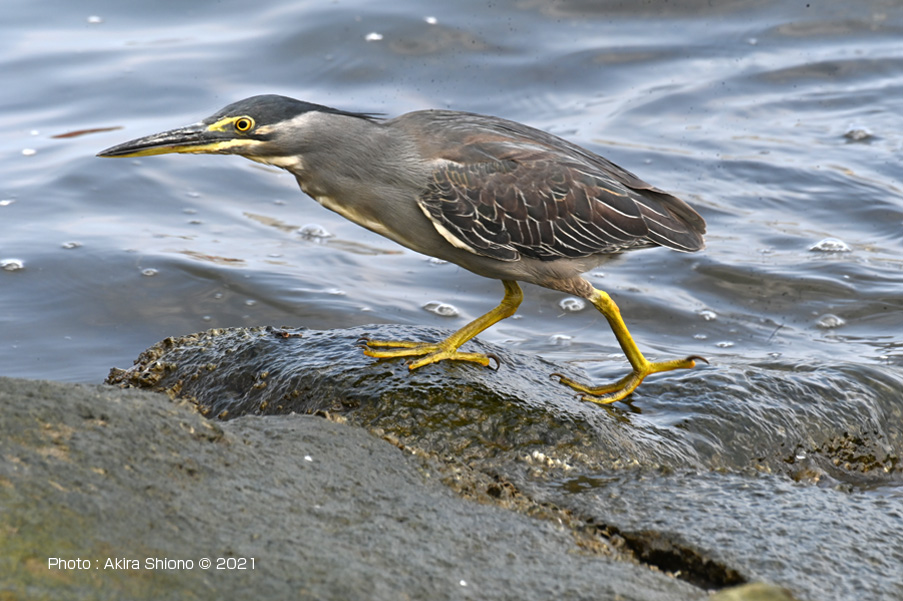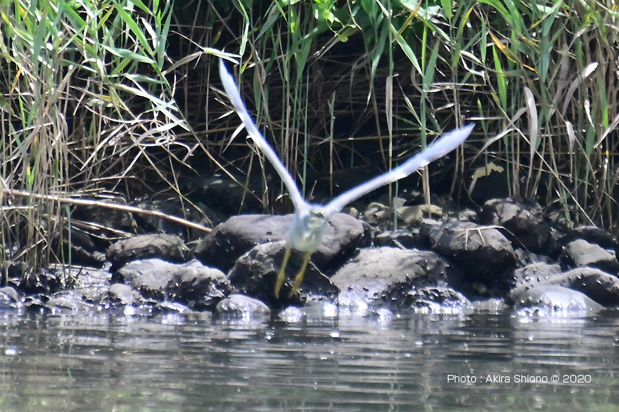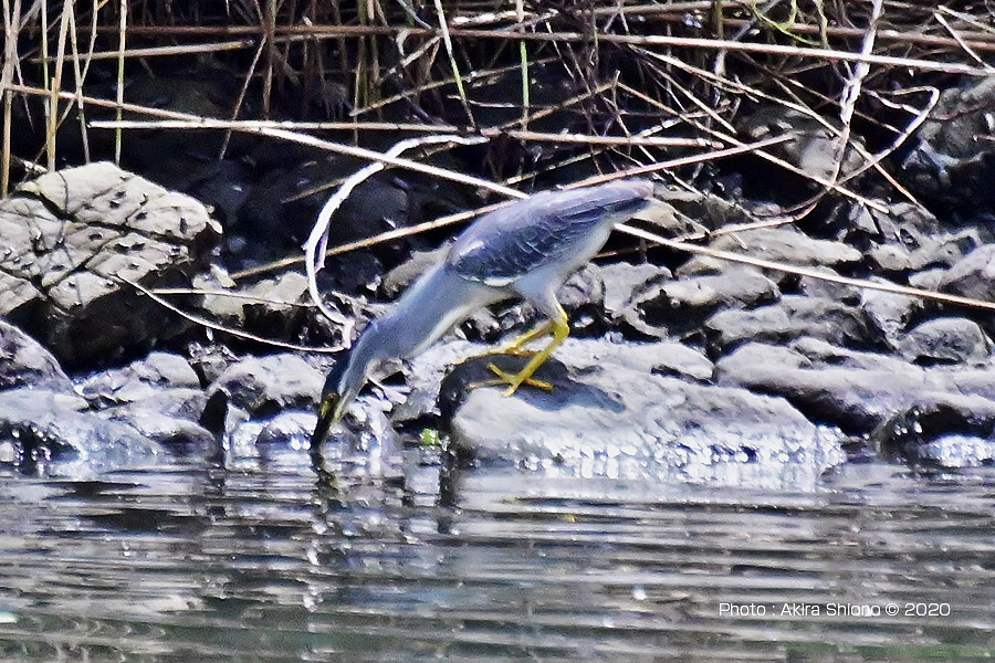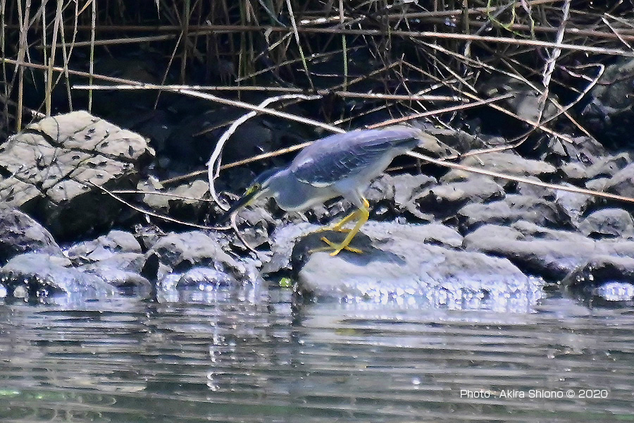 対岸の生い茂る木々の中から飛び出したササゴイは、海につながる水門近くに移動しました。 撮影:NIKON Z50+FT-Z+TC-20EIII+AF-S200-500mmE f11 ISO4000 1/1250 0段 DXモード:1050mm 固定撮影 8月下旬:磯場のササゴイ トップへ
