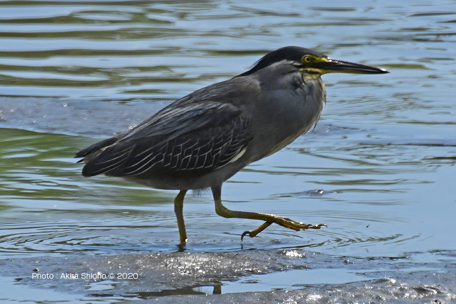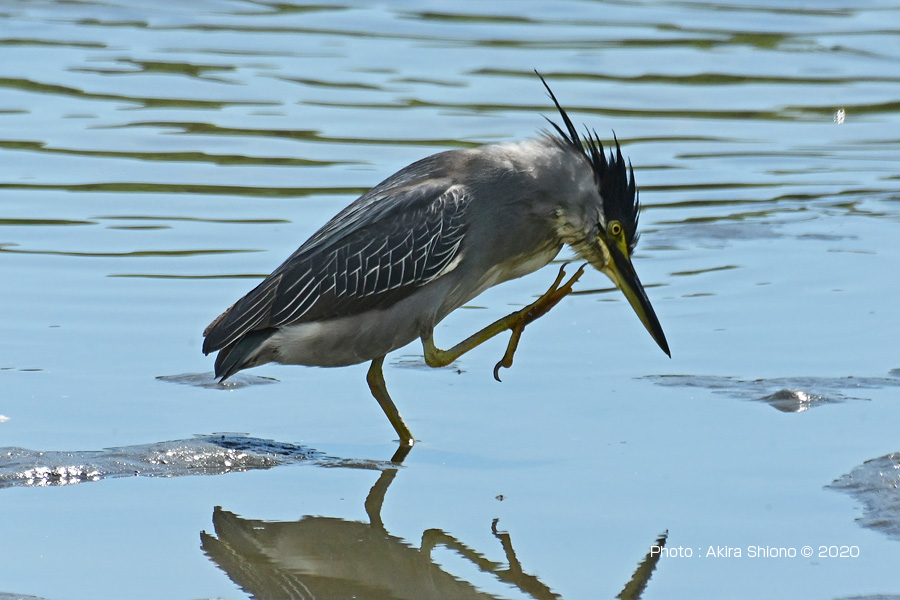首を伸ばしたササゴイの後ろ姿。 ![]() 干潟を歩くササゴイが片脚を高くあげた一瞬で冠羽根が立ちました。