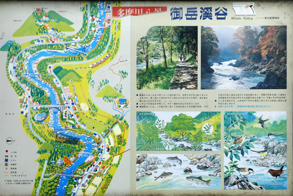 御岳渓谷遊歩道 /澤井〜御岳発電所 移 動: 御岳渓谷遊歩道の手書き鳥瞰地図 御岳渓谷設置の絵看板掲載文 海からのマップと河川標識 リンク: 御岳渓谷遊歩道 奥多摩川の橋 JR青梅線の駅と周辺