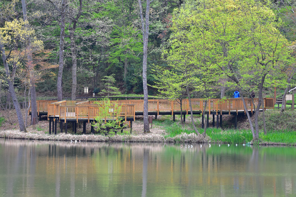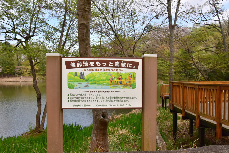 ![]() 狭山公園内にある宅部池(たっちゃん池)。四季折々の植物を観察できます。