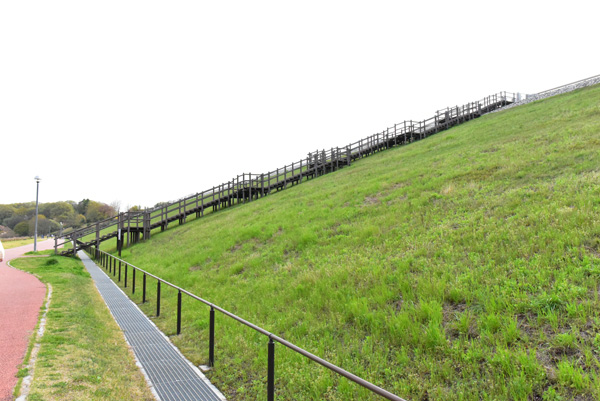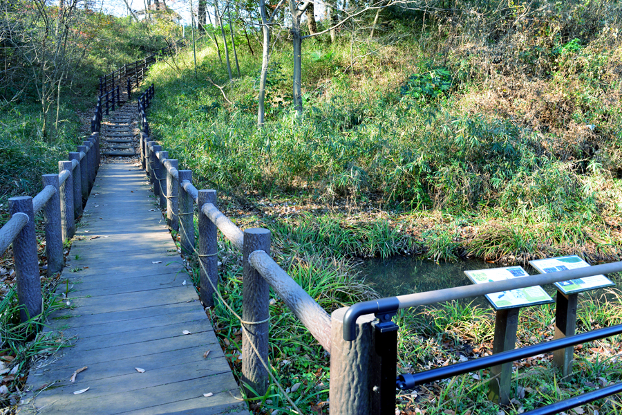 停滞から斜面下の池に続く排水路?堤から狭山公園まで続く長い階段で、踊り場が5カ所あります。