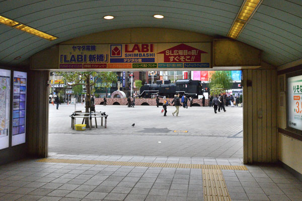 ![]() 左ーガード下のラーメン屋さん「せいべえ」 右ーガード下のアーチをうまく利用してお店を作ってあるモンローの家。 ![]() 新橋駅西口駅前広場に繋がる通路でSL広場が見えます。