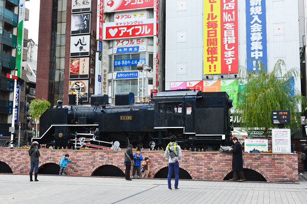 新橋のSL広場に展示してある蒸気機関車は中型のC11 撮影:NIKON D800+24-70mm f2.8 G ED |