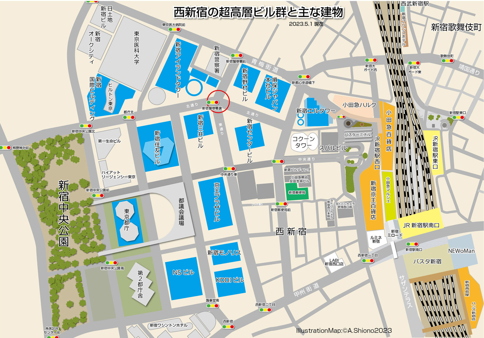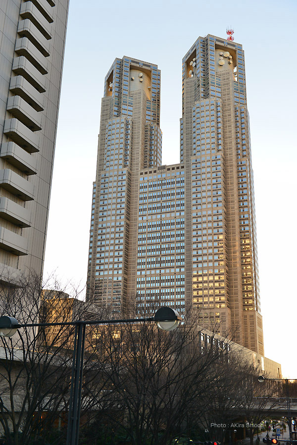当時第一本庁舎は高さ243 mで、完工時にサンシャイン60を抜き、日本一の高さを誇ったその後、日本一の座を横浜ランドマークタワー(1993年完工、296m)に、東京一の座を六本木のミッドタウン・タワー(2007年完工、248m)に譲った。(※2023.5現在は2014年4月開業の「あべのハルカス」の高さ300m)。 着工から完工当時の東京都知事は鈴木俊一。バブル経済の最中に計画された当時日本一の超高層ビルであり、「バベルの塔」をもじって「バブルの塔」、また投入された税金から「タックス・タワー」と揶揄されることもあるが、反面、東京の観光名所の一つとして展望室に訪れる人が絶えない。夜間はライトアップされる。 西新宿の主な超高層ビルマップ トップへ 西新宿の超高層ビル トップ20 2019.11.10更新資料 トップへ