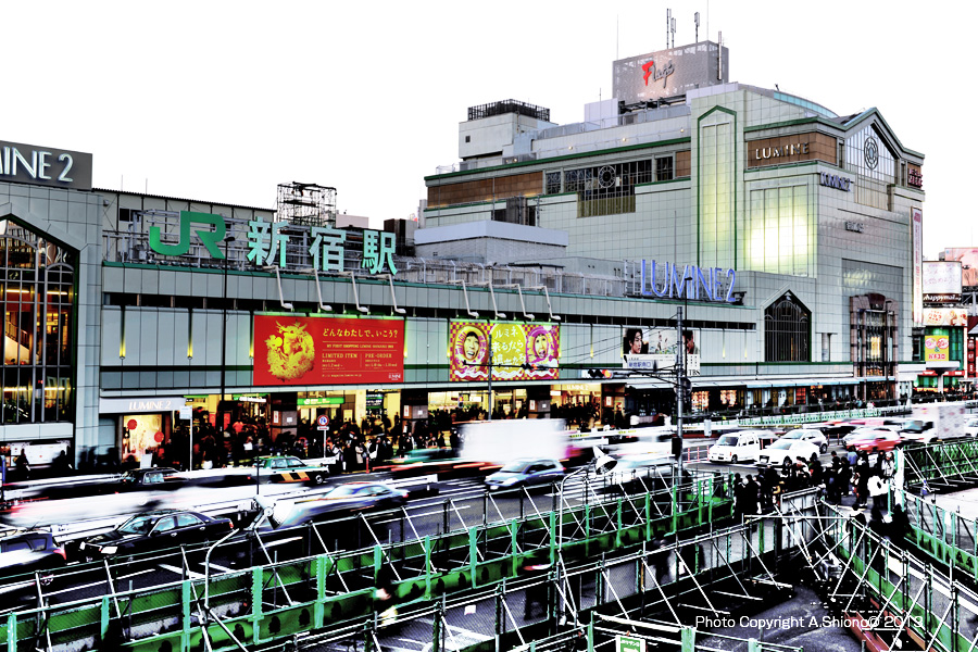 西側のサザンテラス側からと、連絡ブリッジから見た高島屋TimesSqare(撮影:2013.1.4) バスタ新宿の現在と建設中当時の新宿南口 2013.1.4 & 2014.4.7 トップへ ![]() 新宿南口から見た2016.4.4に開業したバスタ新宿(撮影:2016.6.19) ![]() 薄暮の新宿駅南口歩道橋より甲州街道西方面で向かって左側が建設中のバスタ新宿奥にはJR東日本本社ビル ![]() 新宿駅南口人道橋より甲州街道東方面の建設中のバスタ新宿の景色で、この時は空が広く見えます。 ![]() 甲州街道を跨ぐ人道橋から見る新宿駅南口側 ![]() サザンテラスのタイムススクエアーをつなぐ連絡橋からみた建設中のバスタ新宿 バスタ新宿建設前の新宿南口 2003.12.24 トップへ ![]() 歩道橋からみたバスタ新宿建築前の新宿サウザンテラスの年末夜景。ドコモタワーが足元まで見えました。 ![]() 新宿サウザンテラスの夜景:新宿みやざき館 ![]() 2003年頃の新宿南口LIMINE2の夜景でバスタ新宿の建設準備が始まっていました。
