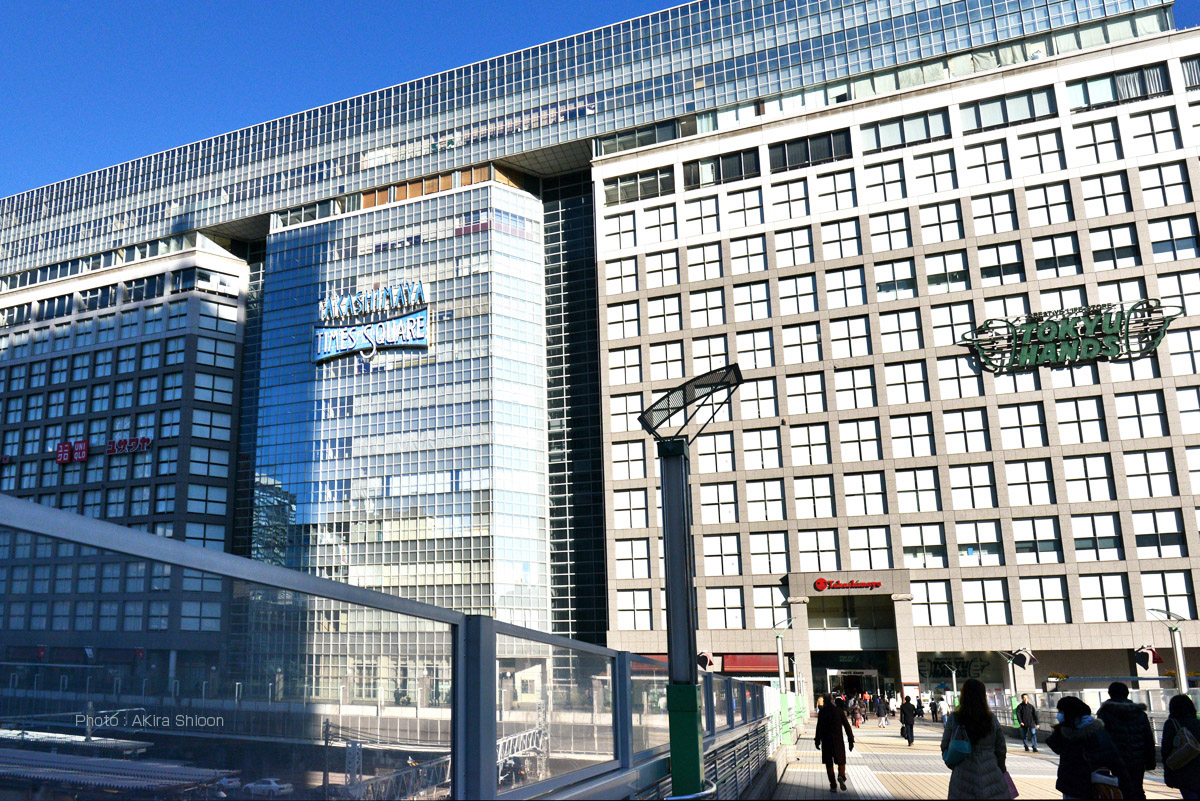 新宿駅南側のタイムスズクエアー 2016 & 2013 トップへ 新宿南口に「バスタ新宿」が完成してから、サザンデッキとタイムズスクエアーのみだった殺風景な景色がガラッと変わりました。バスタ新宿ビルの南側に開放的なデッキが出来南側方向が開放されました。これにより、線路を囲む様にサザンテラスからタイムズスクエアーのデッキととの連結感が増しました。 ![]() 左手の「タイムズスクエアビル」には、高島屋、ハンズ新宿店も入っている「 TimesSquare」 (撮影:2016)