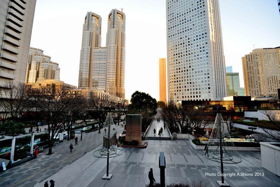 超高層ビルが並ぶ 午後〜夕刻の新宿周辺 移 動: ここ20年で変わった街の景色 コクーンタワー ドコモ代々木ビル 東京都庁第一本庁舎 西新宿の高層ビルマップ 超高層ビルトップ20 東京都庁第一本庁舎 新宿駅南側のタイムスズクエアー バスタ新宿建設中当時の新宿南口 新宿高層ビル街周辺の景色 新宿西口駅前の景色 新宿西口駅前の景色 小田急百貨店色 新宿西口再開発の記事 新宿高層ビル街周辺の景色 リンク: 新宿西口駅周辺の年末の景色 2023 新宿西口駅周辺の年末の景色 2023 外部リンク:新宿駅西口再開発事業(仮称) 午後〜夕刻の新宿周辺 新宿西口駅周辺の年末の景色 2023.12.27 28階から新宿西口周辺 新宿御苑 南エリア 新宿御苑 北エリア 新宿駅南口のバスステーション;バスタ新宿 高い位置から見た新宿西口南方面 高い位置から見た新宿西口南方面 世界貿易センタービル 再び脚光を浴びる 東京タワー 東京スカイツリー 桜木町 日本丸 甦った建築物/東京駅丸の内駅舎復原工事 浜離宮恩賜庭園 小石川後楽園 ここ20年で変わった街の景色 2013.1.4 トップへ H25の1月4日に新宿まで出掛けてきました。年末のクリスマスの頃には新宿駅南口から高島屋TimesSqereに通じる道は奇麗なイルミネーションが飾られます。TokyuHands(現Hands) まで買い物がてら、写真を撮ってきました。時間が少し遅かったので太陽は傾き、この大きな建物は東側にある為に陰が覆い被さっていました。新年の明けということで、店内にはお客様が非常に多く混雑していました。ついでに暫く振りに東京副都心の高層ビル群を見物・撮影することにしました。