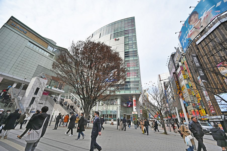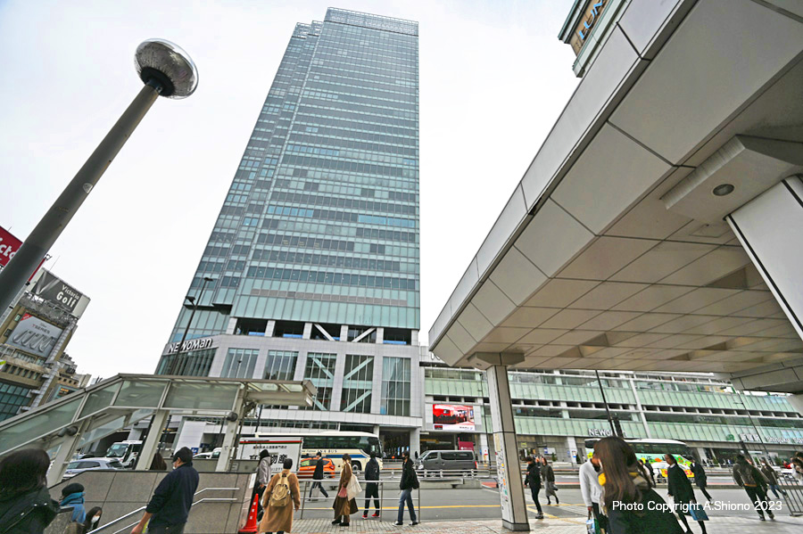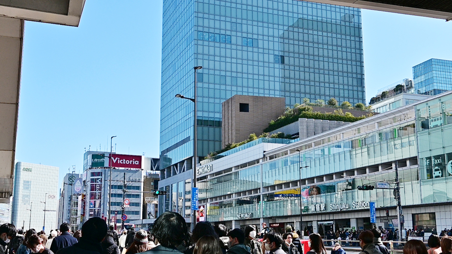 新宿西口駅ロータリーから見た新宿駅西口旧小田急百貨店周辺の景色(2023.12.28)