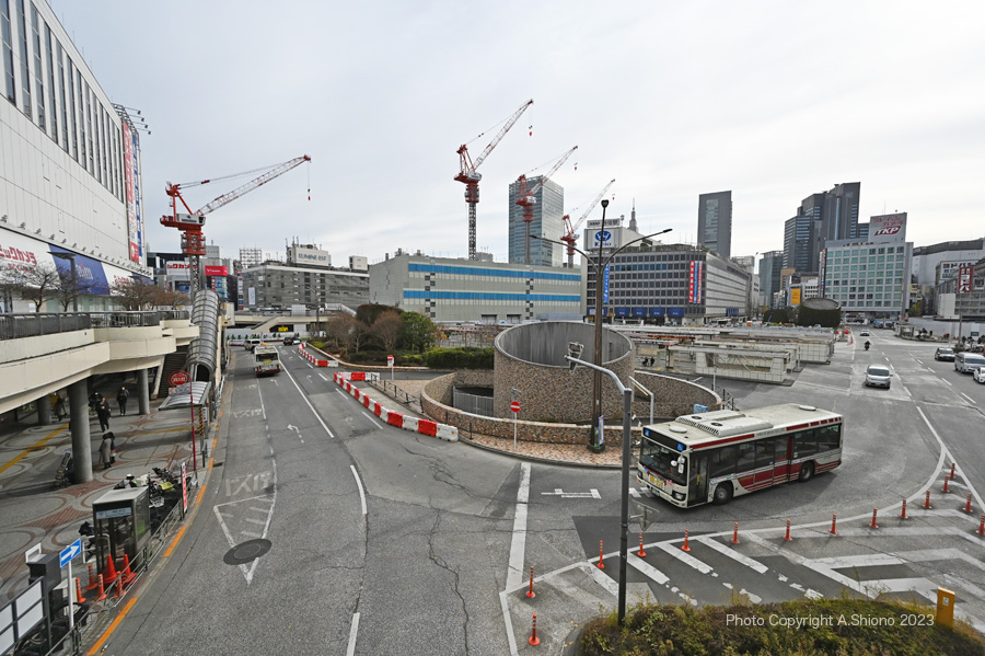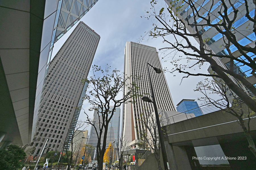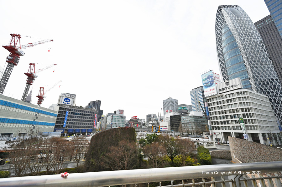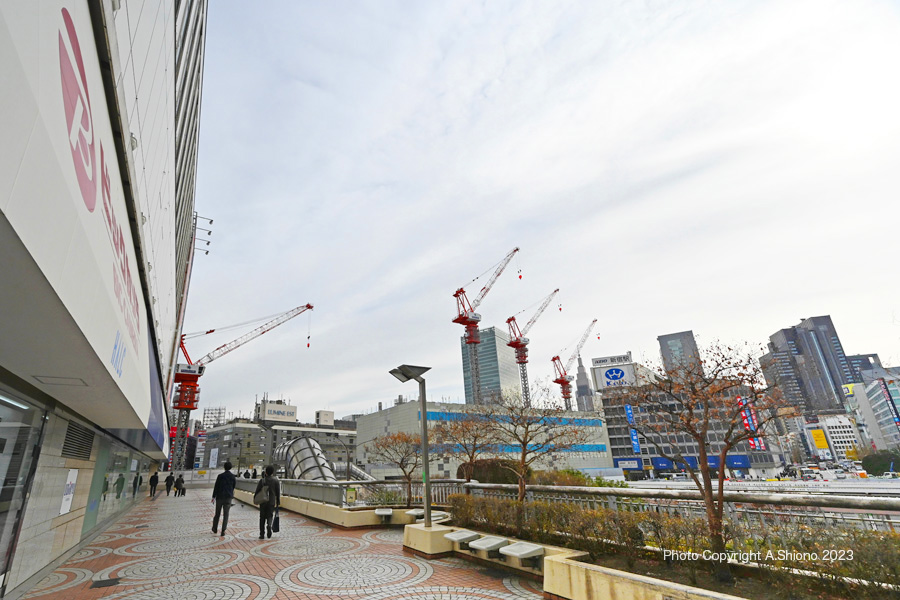 新宿西口ロータリー北側右にも建設現場が見えます。 撮影:NIKON Z6II+Z14-30mmf/4S 新宿駅西口ギャラリー通りの景色 2014.12.18 トップへ
