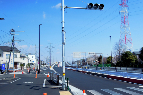 交通解放される新府中街道の中間地点の景色