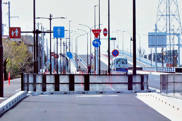 新府中街道の交通解放前のために、区間内には入ることができませんので、広角レンズと望遠レンズを持って内部の状態を撮影してきました。