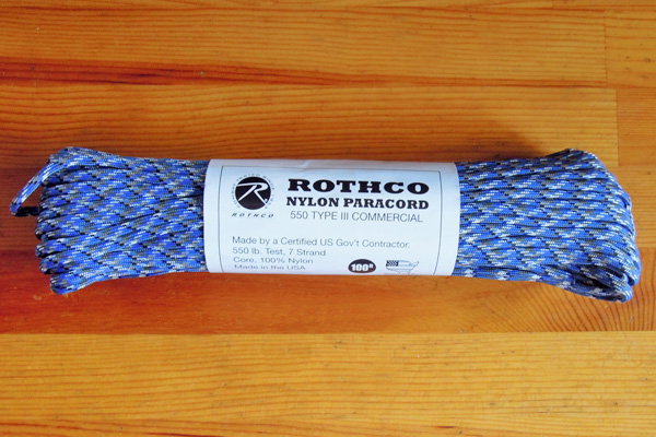 右の写真はパラコードで、元々はパラシュートに使われていたコードで4㍉径で強度は約250㎏あります。下の写真の様に芯は双子撚りのナイロンラインが7本入っています。端の始末もカンタンで碑で炙れば溶けて固まってくれるのでホツレの心配もありません。