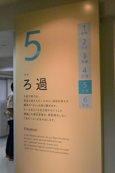 サントリー武蔵野ビール工場見学 サントリー武蔵工場見学 1 2 3 次は・・環境・プレミアムモルツ試飲工場内見学/貯酒行程 トップへ 最高級の麦とホップは、仕込み・醗酵過程へとすすみます。次にこのタンクに貯められて熟成を待ちます。 工場内見学/ろ過行程 トップへ 濾過行程では、熟成を終えたビールから、役目を終えた酵母や「オリ」を取り除きます。ビールをつくる全校手でのこうした徹底した衛生管理が熱処理をしない「生ビール」を生み出します。 工場内見学/缶詰・樽詰め行程 トップへ
