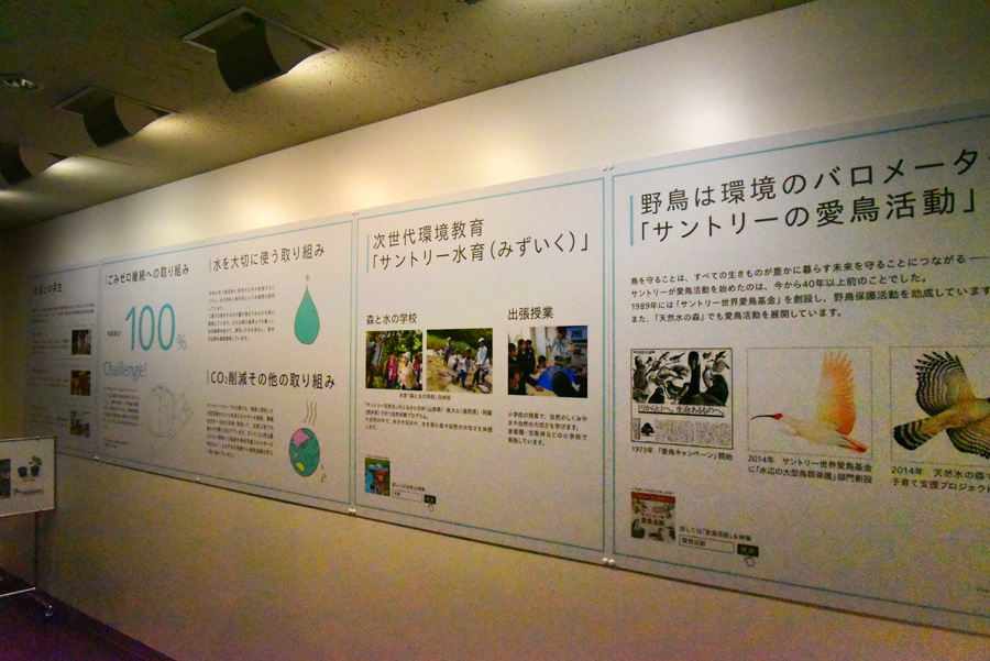 想いは、鳥へ向う 野鳥を守ることは、人のクラス環境を守ることにつながる — そんな想いからサントリーが愛鳥活動を始めたのは40年前のことでした。その心は、いま広大なサントリー「天然の森」での生態系保全活動に受け継がれています。 水育(みずいく) 自然肝要と水資源を未来へ受け継いで行くため、次世代を担う子どもたちに、水の大切さを伝える「水育(みずいく)」。サントリーでは自然の中で学ぶ「森と水の学校」と小学校での「出張授業」を実施しています。 (サントリー武蔵野工場パンフレットより) 試飲ルーム トップへ このビール工場見学は、講座・見学・試飲の3つの行程です。最後はプレミアムモルツの試飲となります。試飲ルームの照明はポットスチルのような趣のある物で、ビール工場の雰囲気を醸し出しています。 3種のザ・プレミアム・モルツ トップへ