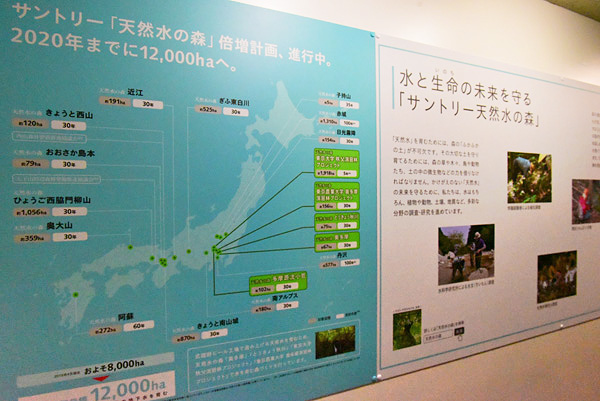 おいしい天然水ができるまでには健全な森と長い歳月が必要です。サントリー「天然水の森」は工場で汲み上げる以上の地下水を育む面積を持ち、森の健康を保つため多彩な分野の調査研究と施行を実施し、50年、100年先を見つめています。