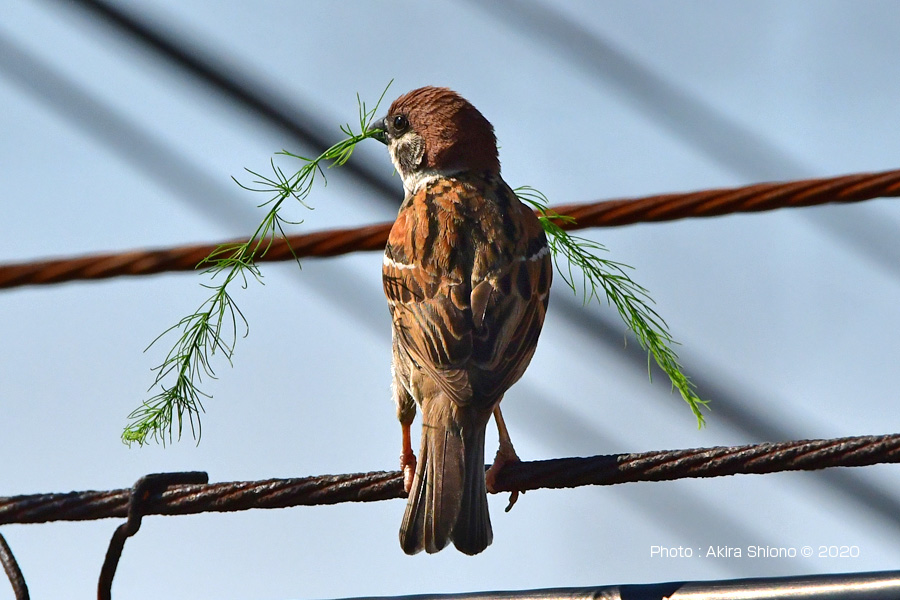 電柱のステーで羽繕いするスズメ。 ![]() 5月下旬の電柱手すりで休みスズメ。 ![]() 6月上旬の餌やりにひと段落つき電線で休むスズメ。 スズメの新しい巣探し トップへ