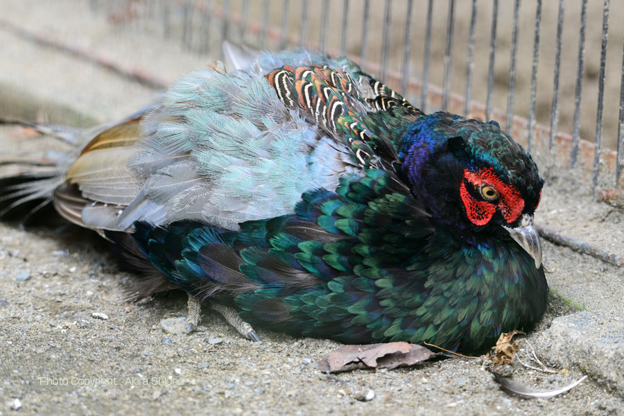 ニジキジは体は真っ黒ですが、名前の通り胸から上が虹の様に奇麗。キジはおとなしく体を休めていました。