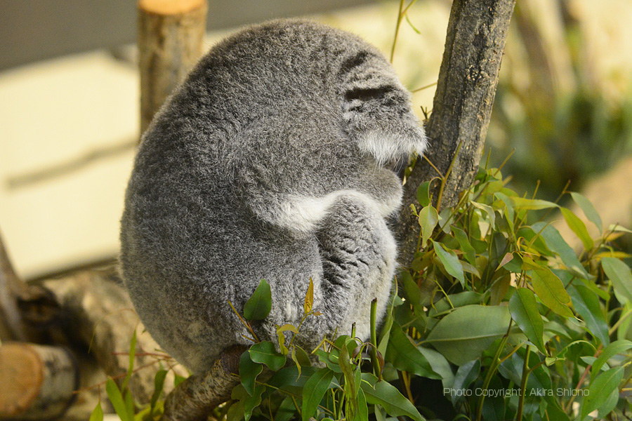 ![]() 毛繕いをするニホンザルの赤ちゃん。ニホンザルのエリアは、いつも何処かで喧嘩をして賑やかです オーストラリア園2 トップへ コアラ館の入口には小さな夜行性の有袋類を見ることが出来ます。コアラはいつも人気でたくさん小さな子ども連れの人々が入館します。しかし、コアラは夜行性なのでいつも寝ているので、正面からの写真が取れないのが残念です。写真を撮られる方は、長めの望遠レンズでカーブしている通路の対面側から撮るなどから狙うといいフレームで撮影できる場合があります。 しかし館内の薄暗さもあってシャッター速度をあげないとブレやすいので、感度を上げてカメラは出来るだけ固定してシャッターを押してください。 アフリカ園 トップへ
