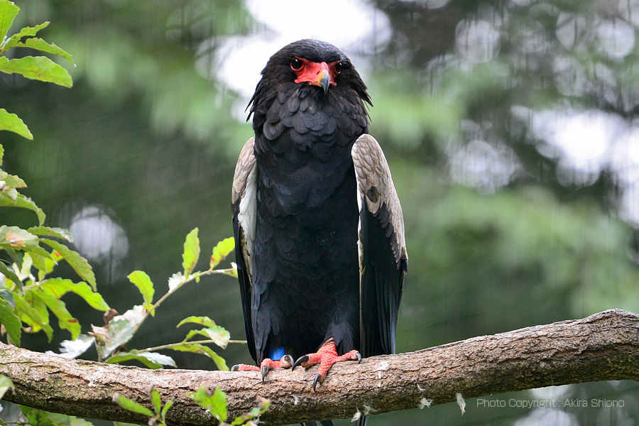 ワシの仲間は自然豊かで大きなフライングケージで飼育されています。ダルマワシはクチバシが赤で目立ちます。