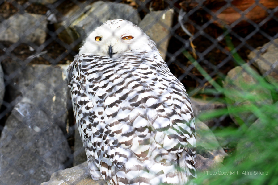 猛禽類のシロフクロウは夜行性で殆ど動きません。コノハズクは耳の様に羽毛が左右に立っています。 アジア園/ゾウとトラ・オラウータン トップへ