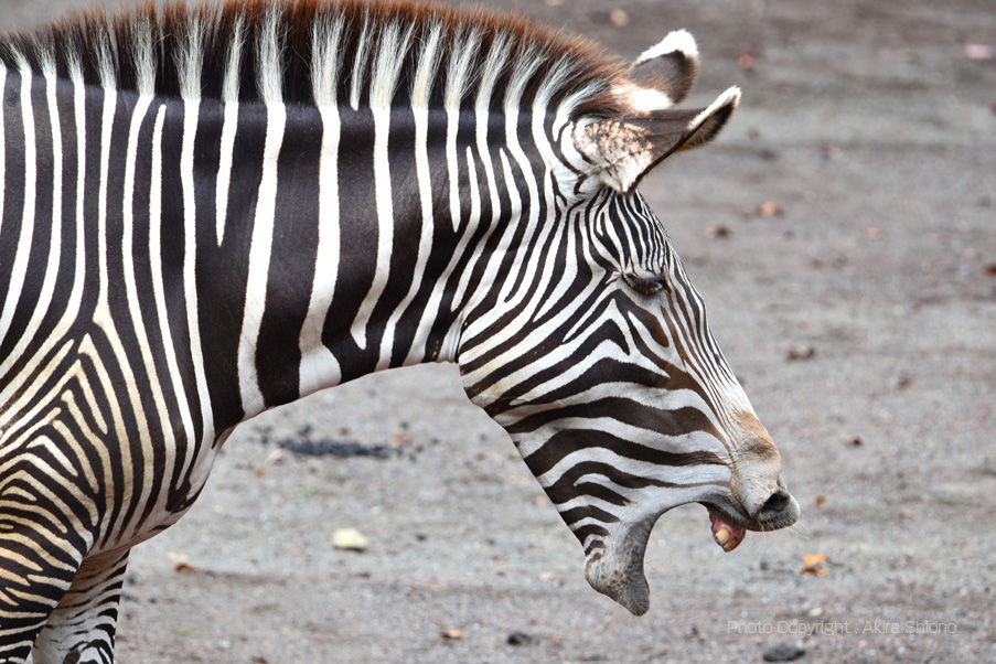 ![]() 左ーアフリカエリアにはシマウマ、キリン等が同居。 右ーこのシマウマはあごが外れそうな、大あアクビをしていました。