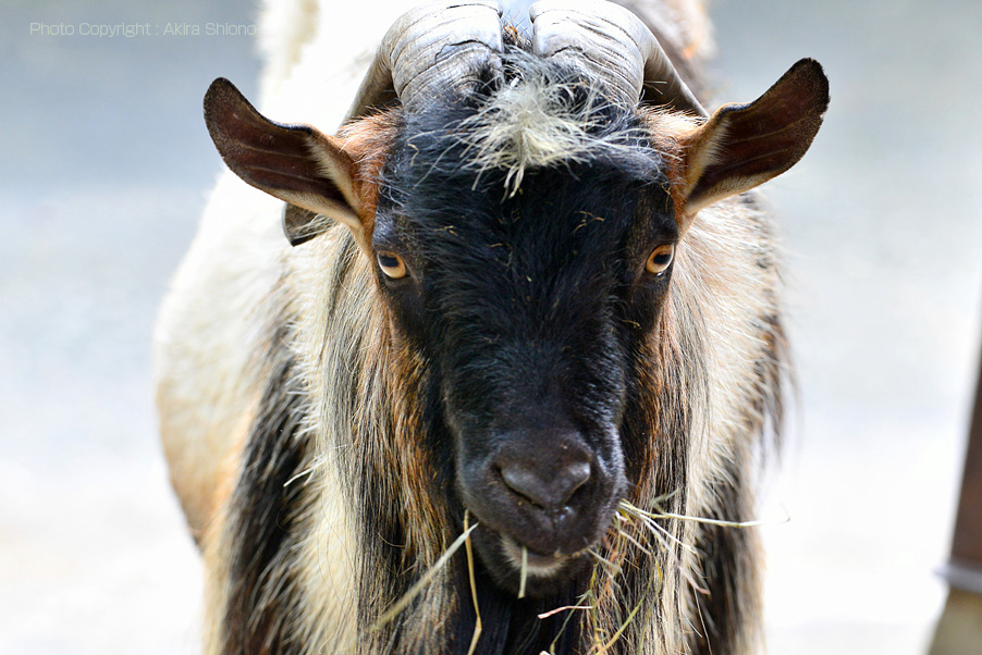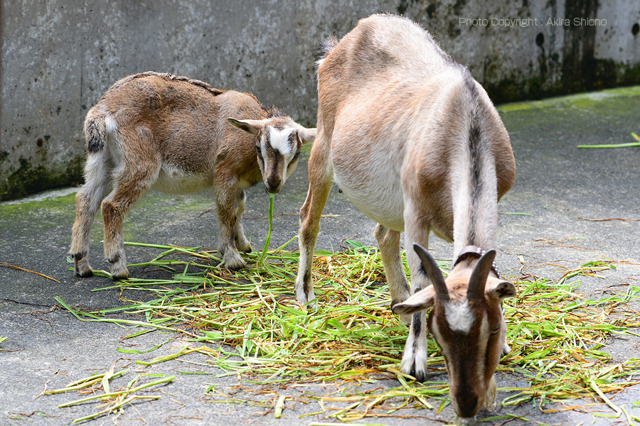 大通りを真直ぐ進むと、親子のヤギがいます。 ひと際大きいのがオス。