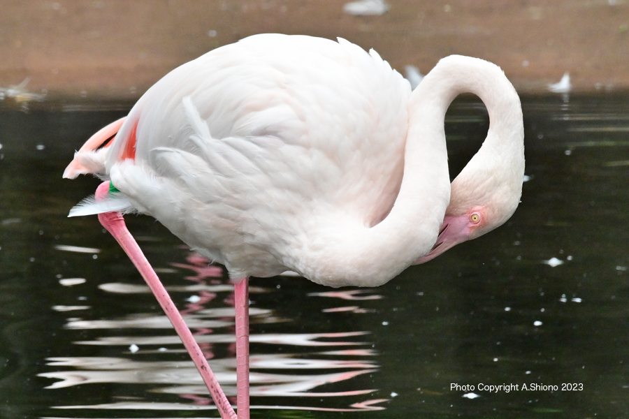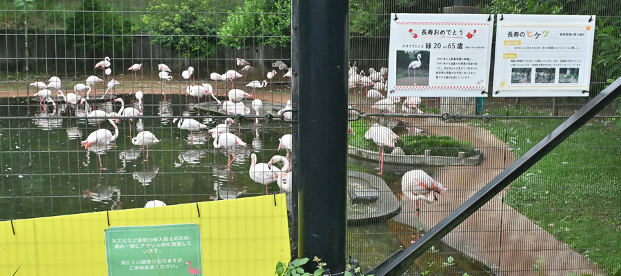 餌待ちの雌ライオンと大きな骨をかじる雌ライオン 撮影:NIKONZ9+Z400mmf/4.5S ISO2500 1/640 f/16 -0.3段 ![]() 2021年の改築でライオンバスの搭乗口は大きく綺麗になっていました。 撮影:NIKON Zfc+Z12-28mmf/3.5-5.6 ISO500 1/1250 f/11 0段 フラミンゴエリア トップへ ![]() フラミンゴエリアで左下には、ネズミ侵入防止の板の説明が