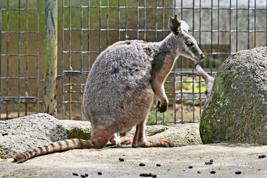 ![]() キリンが見せた一瞬の表情 右は若いキリンの様です。 ![]() 餌の入っているカゴから干し草を親子で食べるキリン 撮影:NIKONZ6II+24-70mmf/4S MOVIEより切り出し オーストラリア園の動物 トップへ ![]() オーストラリア園のカンガルー 撮影:NIKONZ7+200-500mmf/5.6 320mm ISO220 1/320 f/9 0段 ![]() オーストラリア園のワラビー 撮影:NIKONZ7+200-500mmf/5.6 DX210mm ISO640 1/320 f/9 0段 ![]() 室内で就寝中の様子がモニターで写っていました。 撮影:NIKONZ7+200-500mmf/5.6 DX210mm ISO640 1/320 f/9 0段 アジア園の動物 トップへ ワシのフライングケージ トップへ ![]() フライングケージエリアのイヌワシ 撮影:NIKONZ7+200-500mmf/5.6 DX500mm ISO1600 1/800 f/9 0段 ![]() フライングケージエリアのオオワシは草むらから出て来ませんでした。 撮影:NIKONZ7+200-500mmf/5.6 DX500mm ISO10000 1/800 f/9 0段 ユキヒョウ:アジア園 トップへ ![]() 多摩動物公園の最上部にあるユキヒョウのエリア 撮影:NIKONZ7+200-500mmf/5.6 240mm ISO640 1/250 f/9 0段