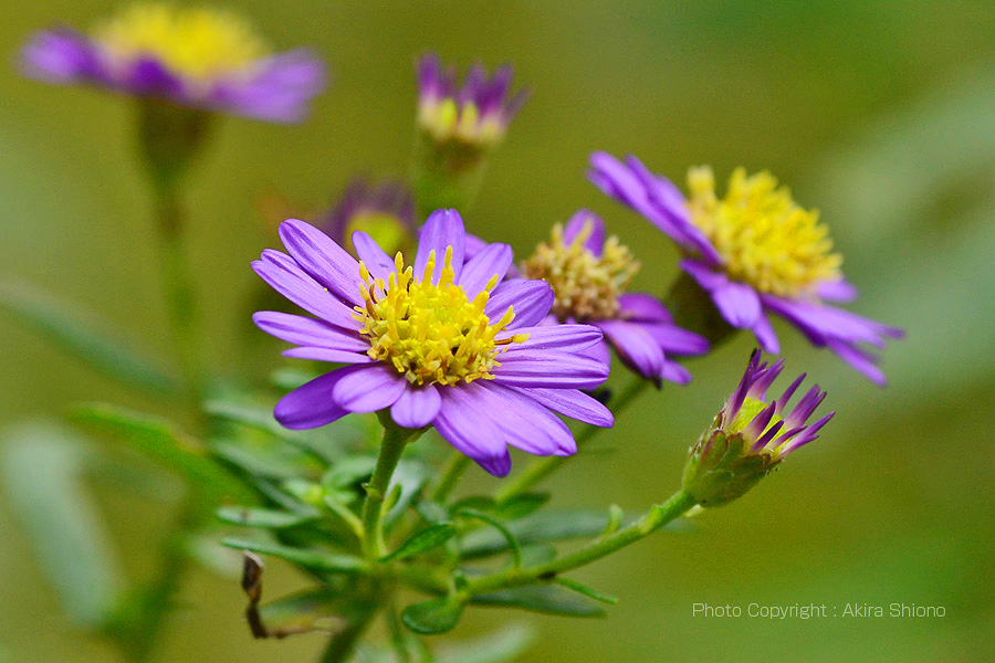 9月から咲いているシュウメイギク。ノコンギクは花びらのピンクがかった紫と花芯の黄色が素敵