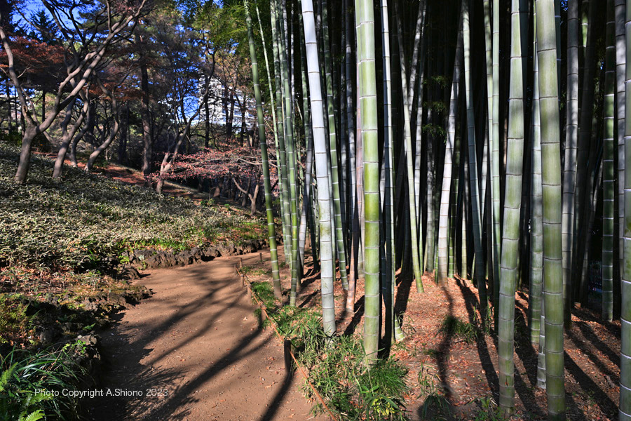 12月上旬の殿ヶ谷戸庭園 2014.12.8 トップへ ![]() 2024年の12月は気温が高い日が多く、上旬になって紅葉の最盛期となっています ![]() 次郎弁天池には湧水が流れ込んでいます ![]() 紅葉亭から眺める次郎弁天池 周りの木々は各色に色変わりしています ![]() 庭園の東側には「竹の小径」が風景にアクセントを与えています 撮影:NIKON Z7+Z24-120mmf/4S 2023年年末の殿ヶ谷戸庭園 2013.12.28 トップへ