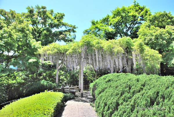 ![]() 5月には園内南端の藤棚の花が目を楽しませてくれ、初夏の殿ヶ谷戸庭園の次郎弁天池は避暑地を思わせます。