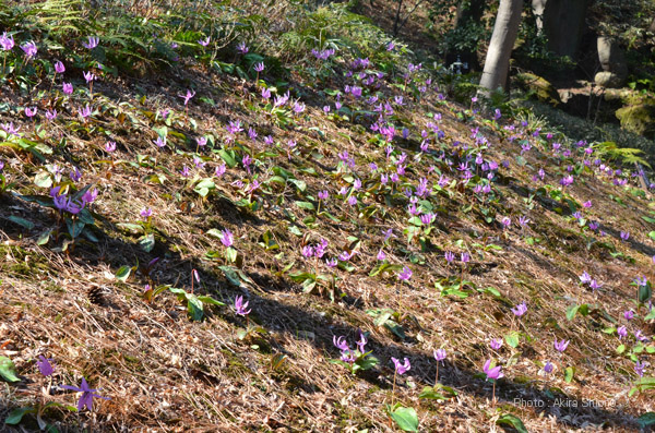 ![]() 3月中旬頃には次郎弁天池の南にある丘のカタクリ群生が見どころで、カタクリのアップ画像