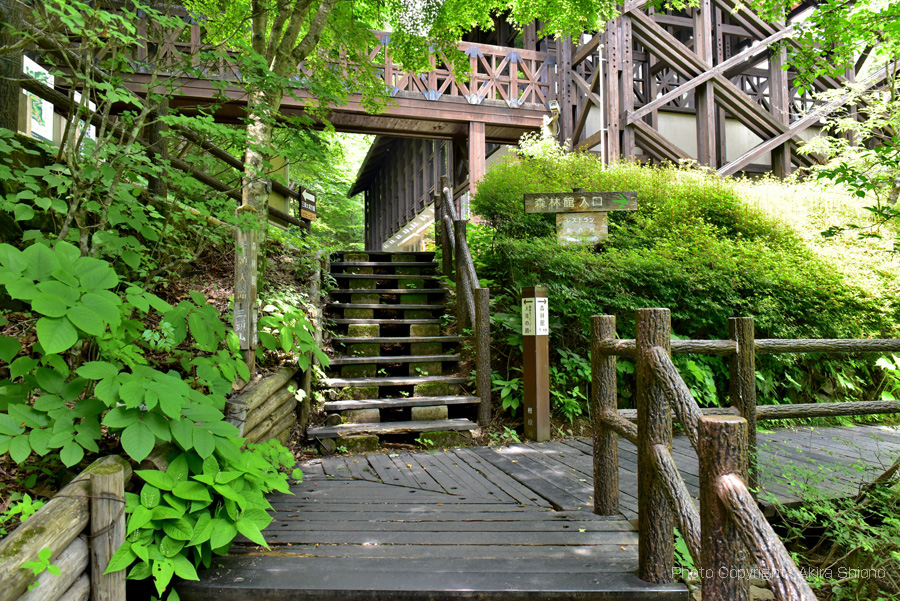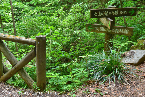 都民の森の入口から上り坂が続き、森林館に繋がります。 ![]() 森林館手前を道標の表示に従い階段を上り左へと進みます。