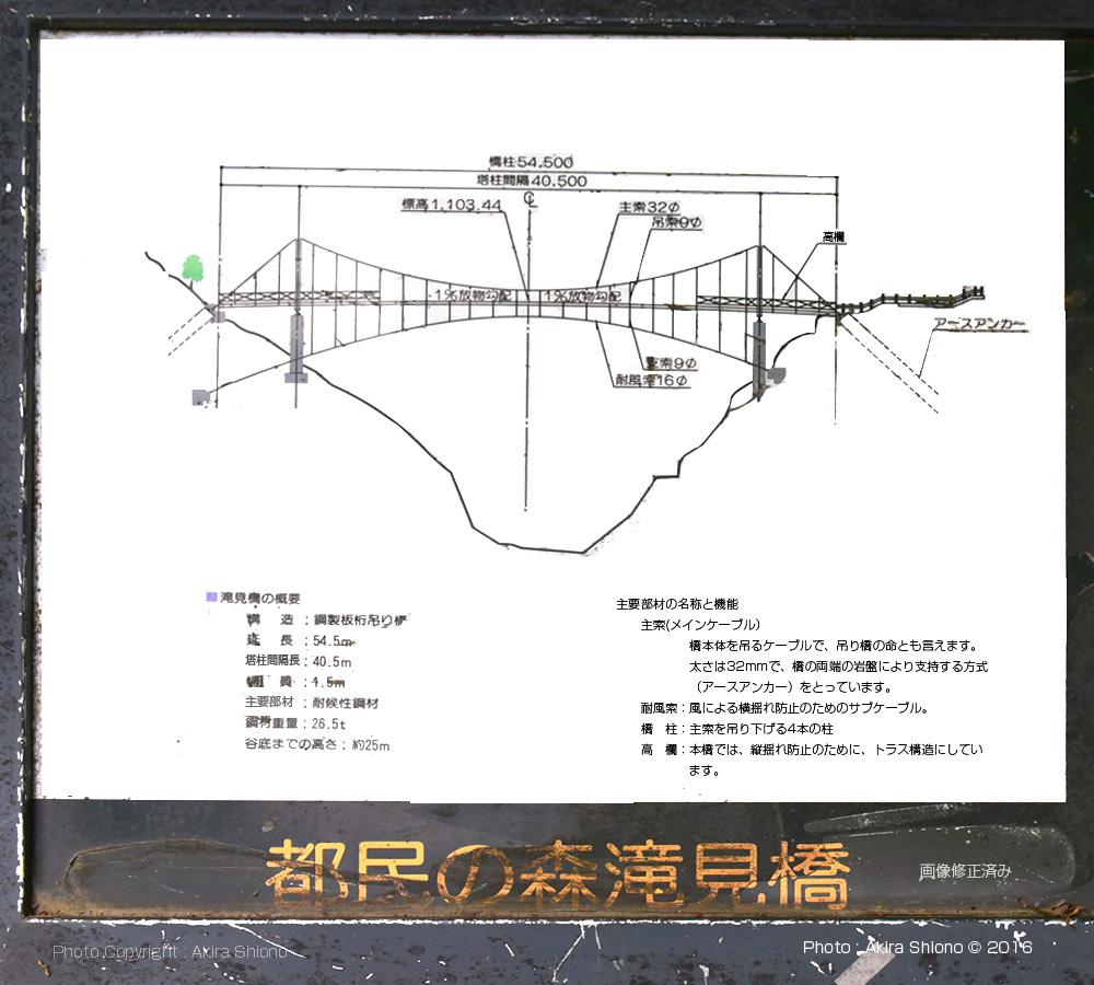 ![]() 滝見橋の看板は傷と汚れが大量に付き、とても見づらいので画像処理しています。